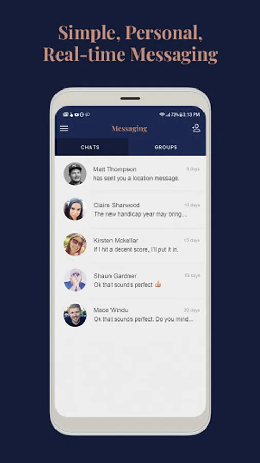 • Simple, personal, real-time messaging so you can easily stay in touch with your club friends and family.