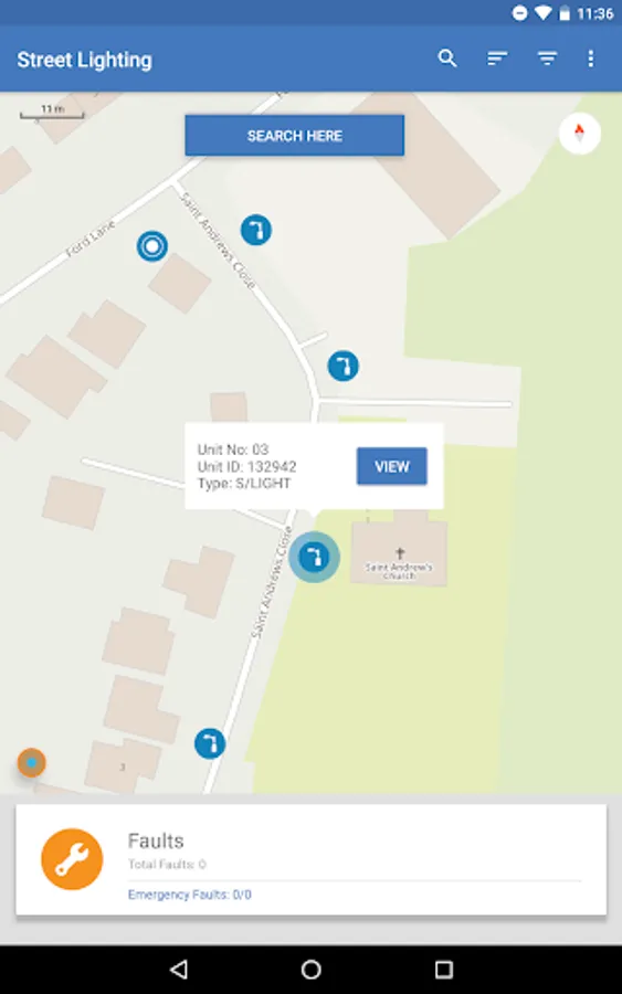Street Lighting allows street lighting operatives to maintain their lighting inventory. Faults can be allocated to mobile users and parts used recorded against the lighting unit.