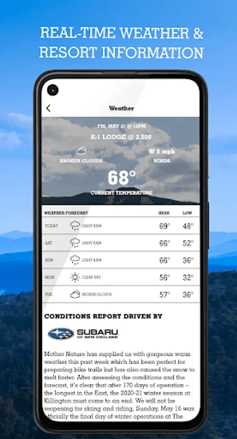 The official app of Killington Resort. Make the most of your day at The Beast of the East. Connect with your friends on the mountain, track your bike days, view real-time lift & trail status.