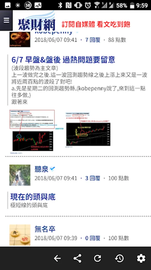 聚財網行動手機版,會員下載安裝登入後,預設「挺的作者」發表主題推播通知。(如會員安裝多台裝置,僅有最後登入的那台會通知)