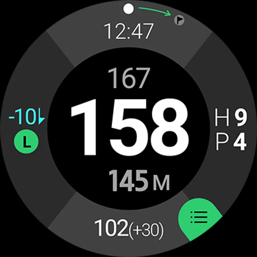 Distance measurement: Guides the remaining distance from the user's current location to the green tee