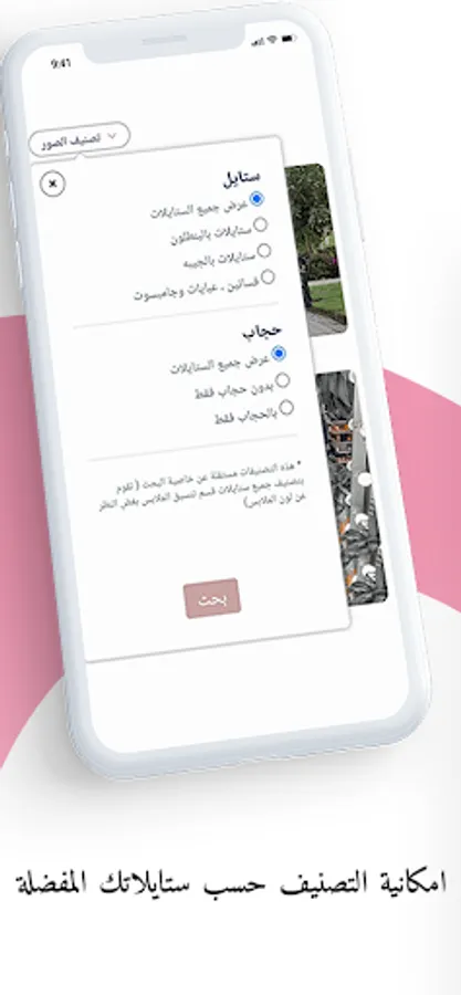 يحتوي التطبيق على قسم ملابس السواريه الذي يضم مئات من فساتين السواريه وملابس السهرة للمحجبات وغير المحجبات