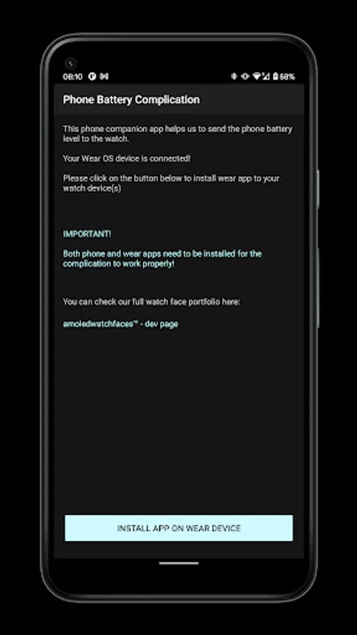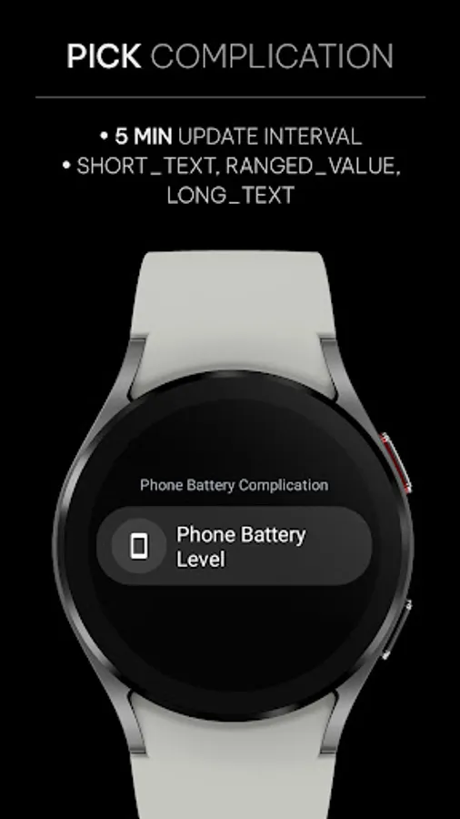 This app provides phone battery level complication for Wear OS devices. See your phone's battery level from your Wear OS smartwatch!