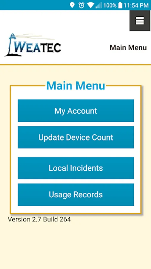 The app includes the ability to open comment requests from flag incident emails, even on devices with the browser removed or disabled. You can also review all usage and incidents, update your Weatec account settings, and update device counts.