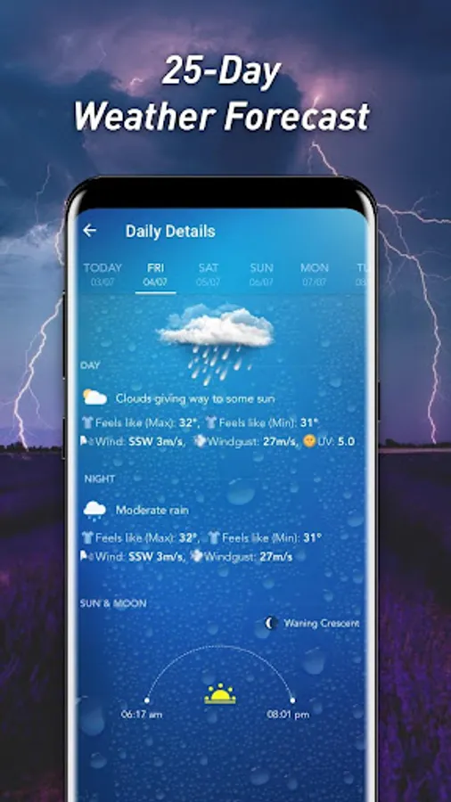 - Resident notification bar for easy viewing of weather information without opening the application.