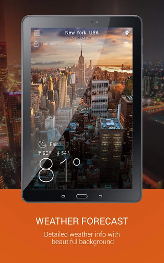 - Lock screen with info: temps, rain, clouds & clock widget weather