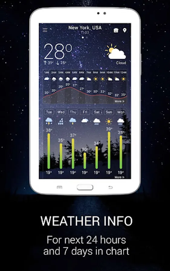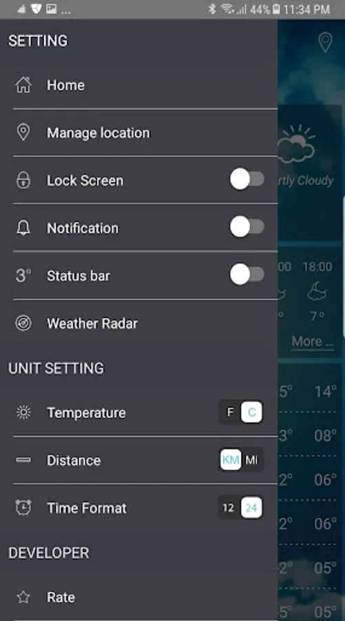 - Weather notification bar: Keeps weather running underground for realtime, you can see the temperature on android system bar without opening app