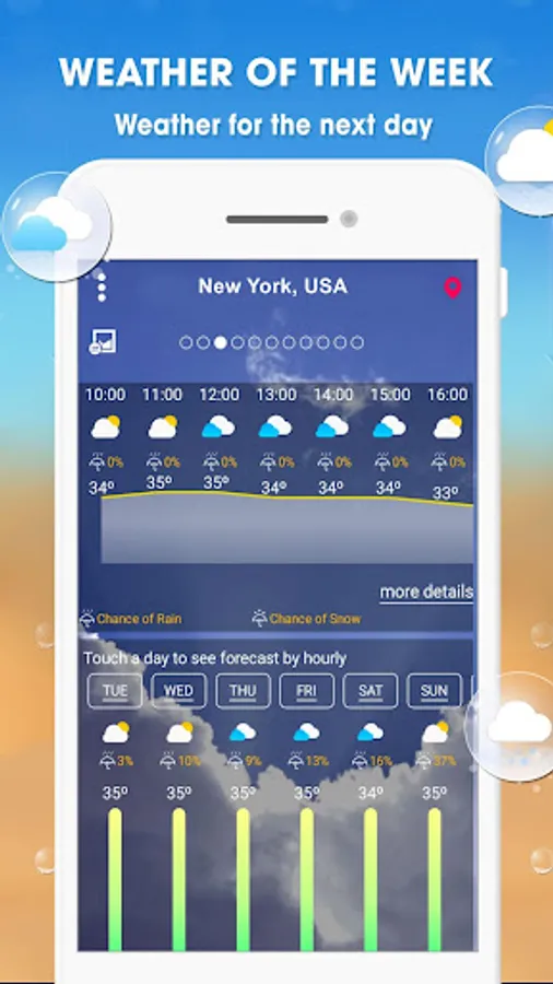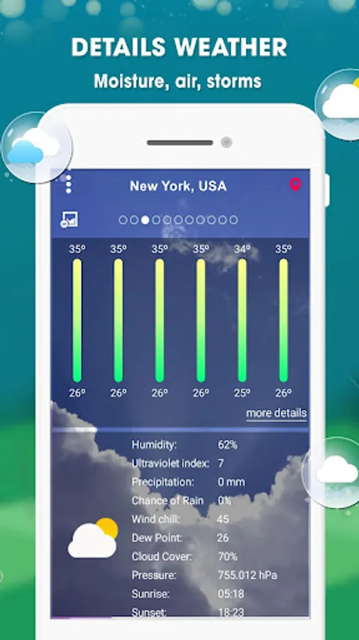 Weather forecast: Weather - Temperature is the prediction application of fast and accurate weather information and us newspapers for all users. It’s easy to use application, with just one click, you can check local weather radar live, today’s weather, the next 7 days,