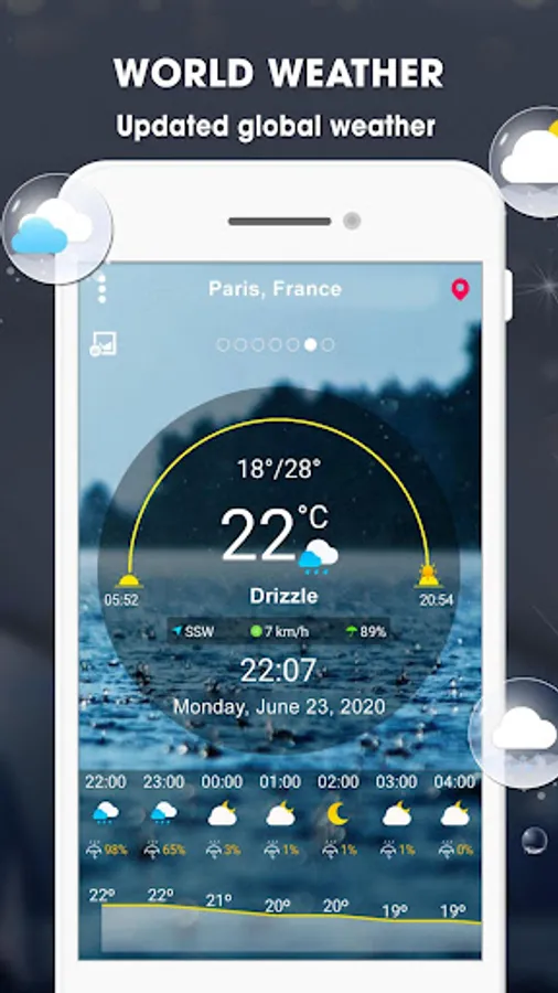 Weather forecast is an indispensable application in your smartphone. It is very useful for everyone with accurate weather and provides today's weather forecast or tomorrow's detailed weather forecast and updated breaking news from the US today. It also provides current atmospheric pressure, online weather conditions, climate, relative humidity, barometer, dew point, speed, and wind direction with live radar. Daily newspaper and hourly weather forecast. Real-time weather gives you accurate weather information no matter where you are!