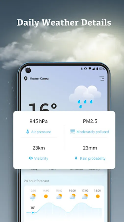 No matter where you are, the local Daily weather app can provide you with real-time updates on temperature, wind speed, humidity and more. You can view detailed hourly and daily forecasts, and you can also check the weather conditions in other regions, and learn about the precise weather information in many places to facilitate your travel and travel.