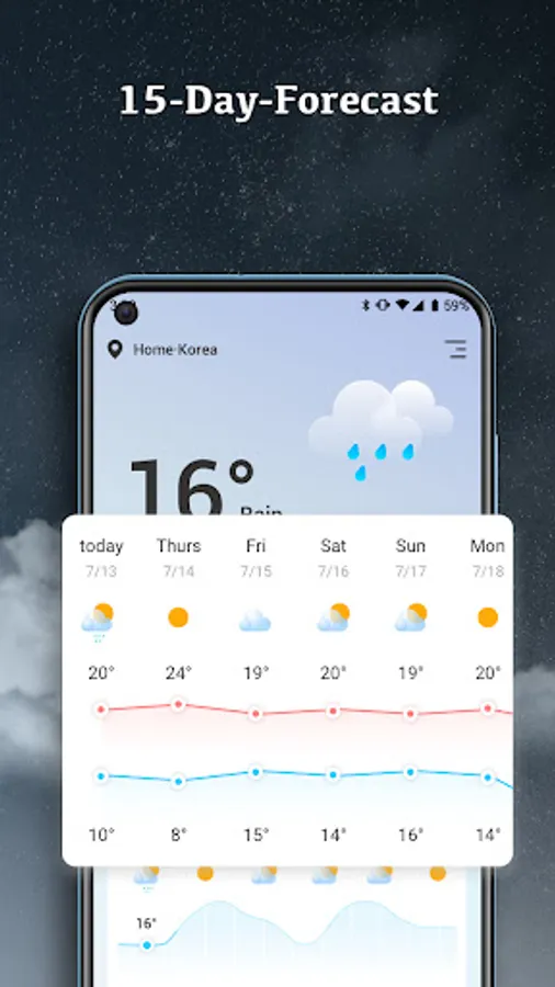 Supports real-time weather forecasts around the world and provides detailed 15-day weather information. A user-friendly UI interface that displays information about rainfall, snowfall forecasts, day and night temperature changes, UV index, humidity, wind direction, wind speed, visibility changes, and life advice.