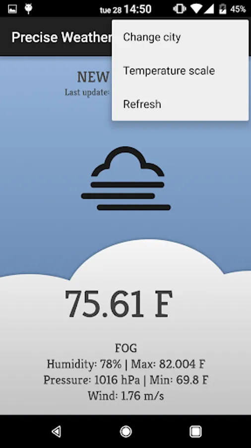 You can easily change from celsius scale to a fahrenheit one. For any suggestion for the app please contact me. Thank you and enjoy.