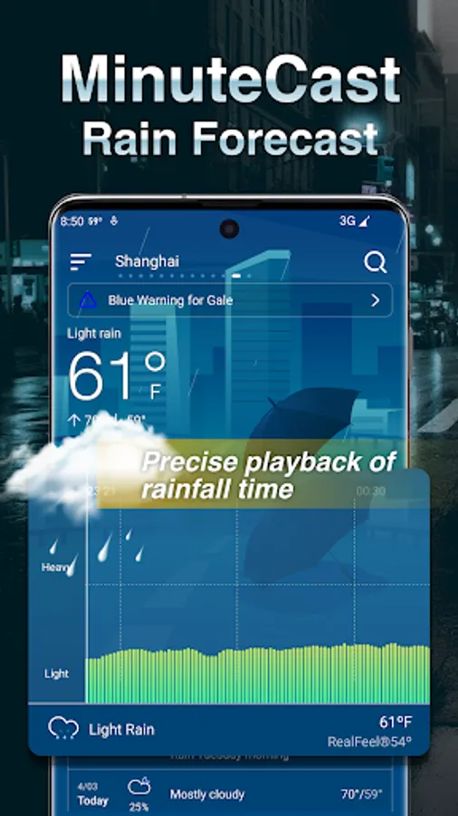 - Envía a información meteorolóxica máis importante todos os días, para que poidas estar informado sobre as condicións meteorolóxicas detalladas durante todo o día.