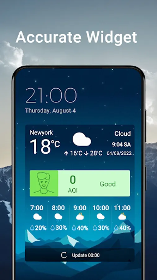 - Weather widgets display the current temperature, time and date from the current location on your home screen, simple weather information, daily and hourly forecast.