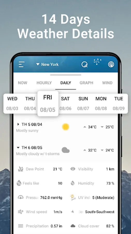 - Daily weather forecast for the next 7 days with detailed w weather information