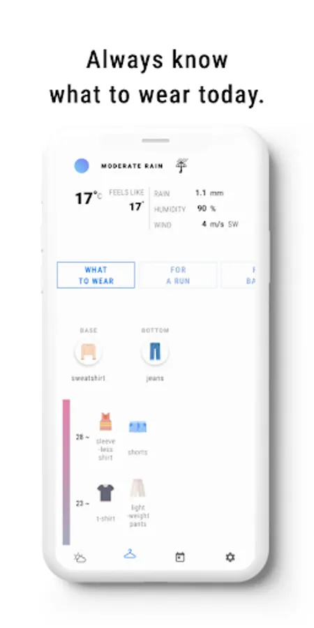 Weather2wear aims to provide you a comprehensive weather information with a design as simple and clean as possible. With that it also shows different colors of hues of the sky for you to enjoy.
