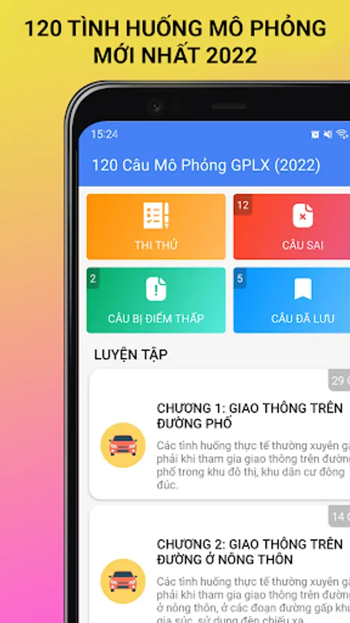 Chapter II: Includes 14 situations from 30 to 43 revolving around real-life situations frequently encountered when participating in traffic on rural roads in winding roads, at night, with livestock, using lights. far projection,...