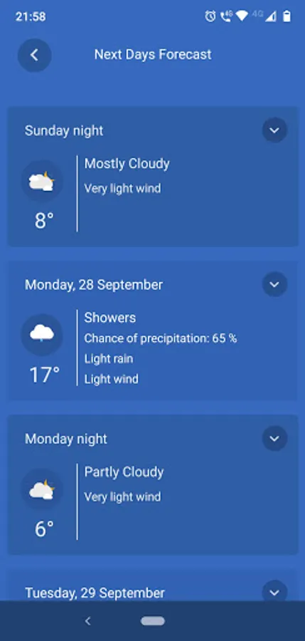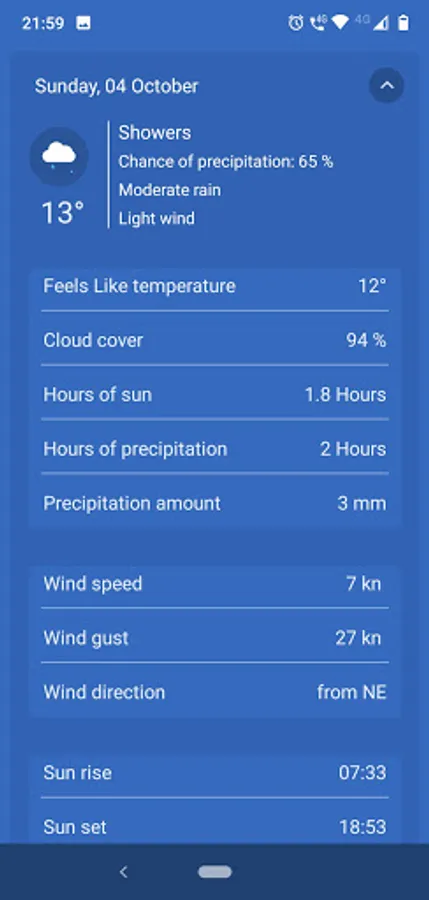 Don't let the simplicity full you, this is a complete weather app, with hourly data and forecasts for the next 15 days. When you'll need details you will find them easily.