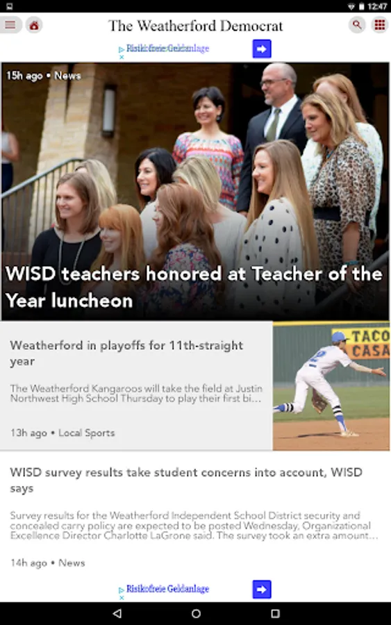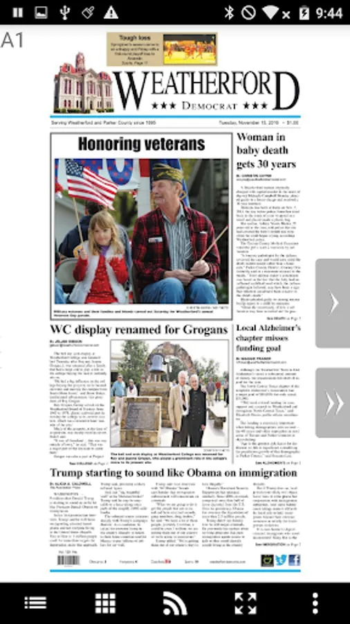 Take the Weatherford Democrat with you wherever and whenever you go. Your community resource for news, commentary, photos, video and special features is evolving. Access it now and take off with our award-winning breaking news, sports, weather and more. The app is free to download, but subscribers can receive the Weatherford Democrat daily edition or access premium mobile content for one low monthly rate. Not a subscriber yet? Access limited content each month for free, and upgrade at your convenience.