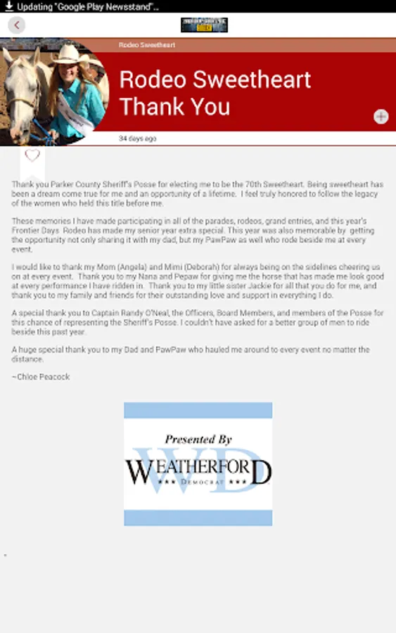 Keep updated and share your favorite moments at the Parker County Sheriff's Posse Frontier Days PRCA Rodeo and Junior Livestock Show