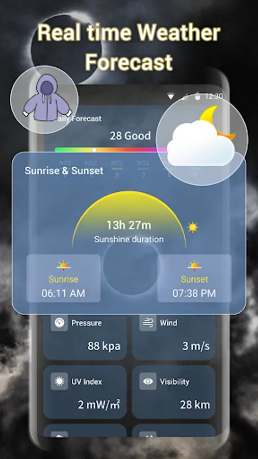 - Stay updated with real-time weather forecasts, temperature information, air quality pollution index, and weather alerts for your current location.