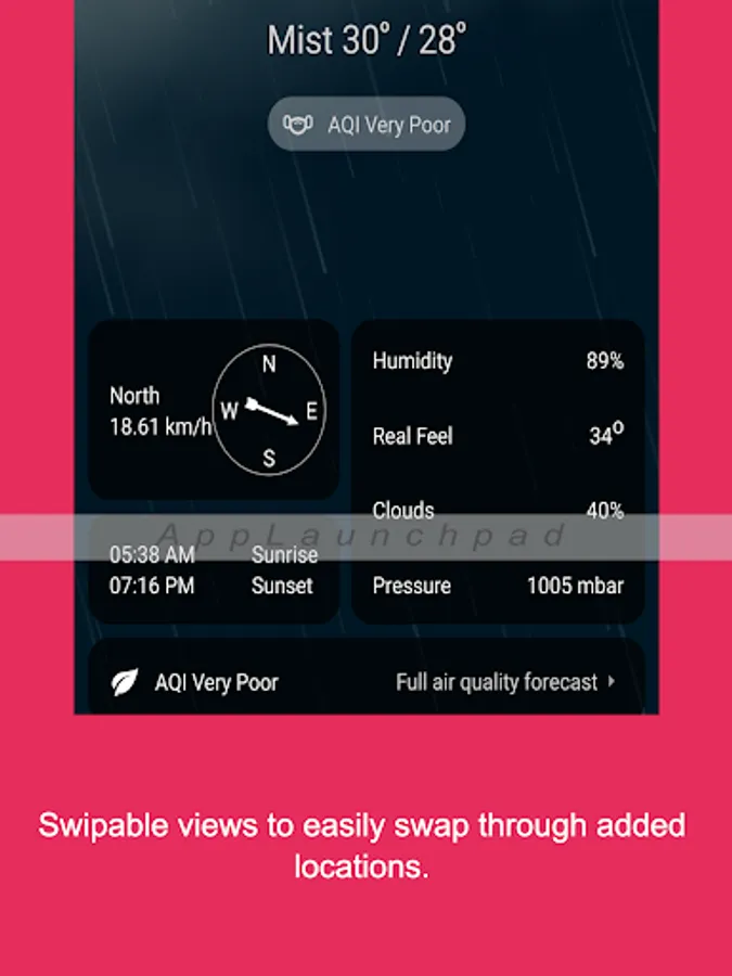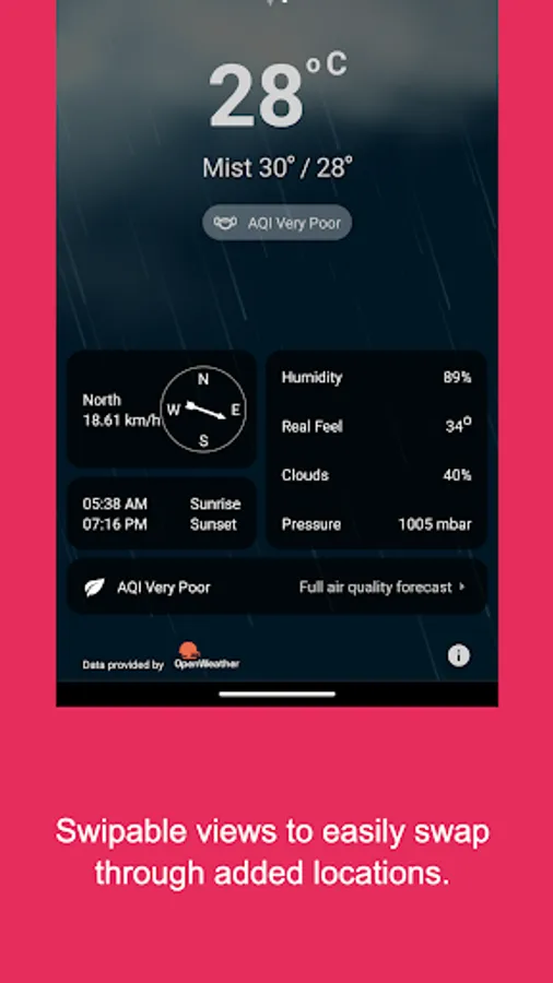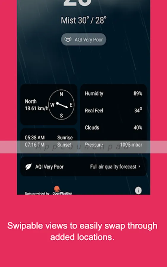 5. Sunrise & Sunset Times: Planning a morning hike or a romantic evening outdoors? Weatherly provides you with accurate sunrise and sunset times, helping you make the most of your day.
