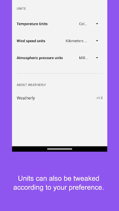 7. Temperature Unit Conversion: Customize Weatherly to display temperature in Celsius or Fahrenheit according to your preference.