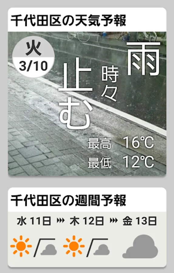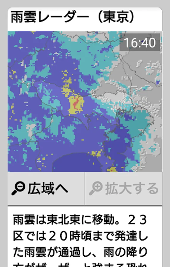 カード形式で表示はとてもシンプル。お好みの情報を自由に追加したり並び替えたりでき、あなたに最適な天気アプリが完成します。