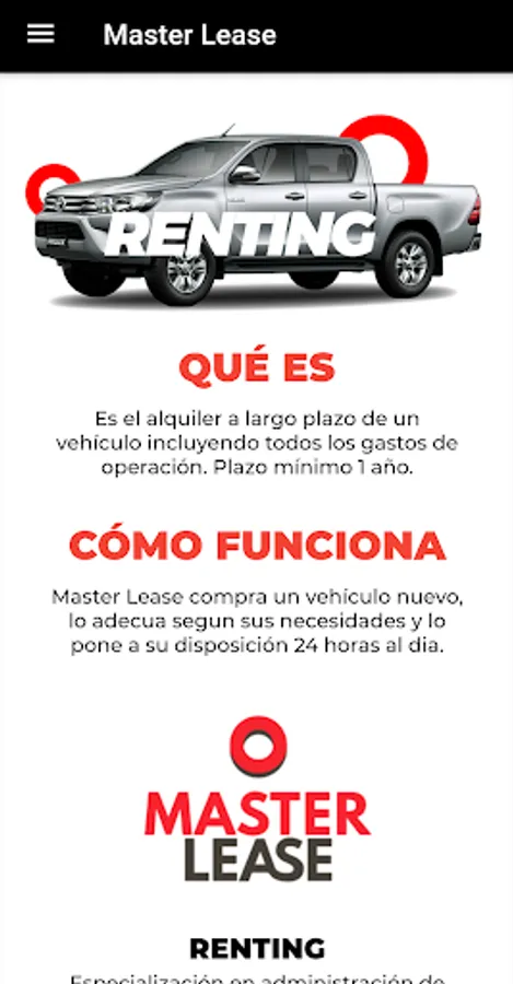 Also in the main menu you will find information about the other services such as Service Center, Trolleys, Business on Wheels, Master Lease, Accessories and more.
