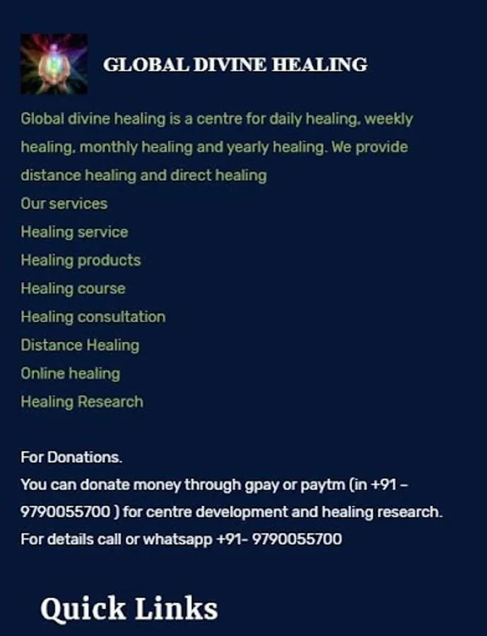 Healing is an energy therapy in which practitioners consciously use their hands in a heart-centered and intentional way to support and facilitate physical, emotional, mental and spiritual health.Healing is a biofield (magnetic field around the body) therapy that is an energy-based approach to health and healing.Global divine healing centre have best healing methods
