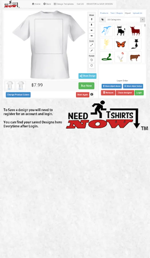 Design a T-shirt and print. Customize a shirt and share with your friends and family on Facebook and other social media and/or purchase your shirt and have shipped directly to you.