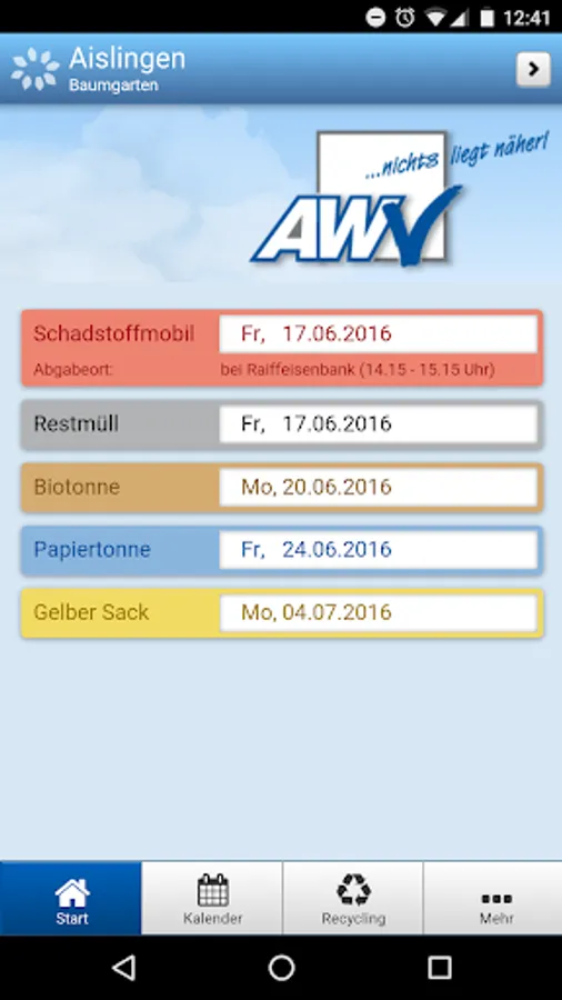 * News and important information of the disposal company directly via the push functionality of your smartphone.