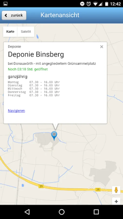 * Collection points for waste of all kinds, including location and opening times, incl. Map and navigation.
