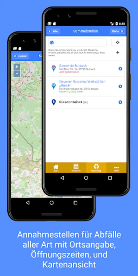 ? Acceptance points for waste of all kinds with location and opening times, incl. map view and navigation.