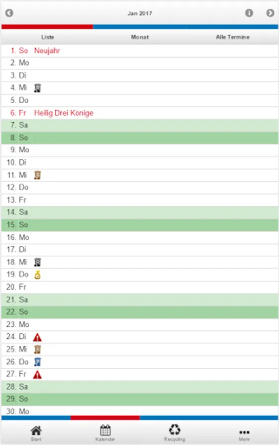 * Remember to highlight the ton? With the memory function, the dates for the emptying in your calendar transferred.