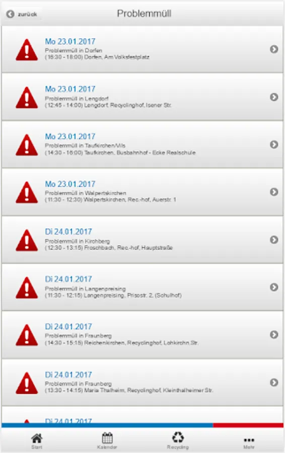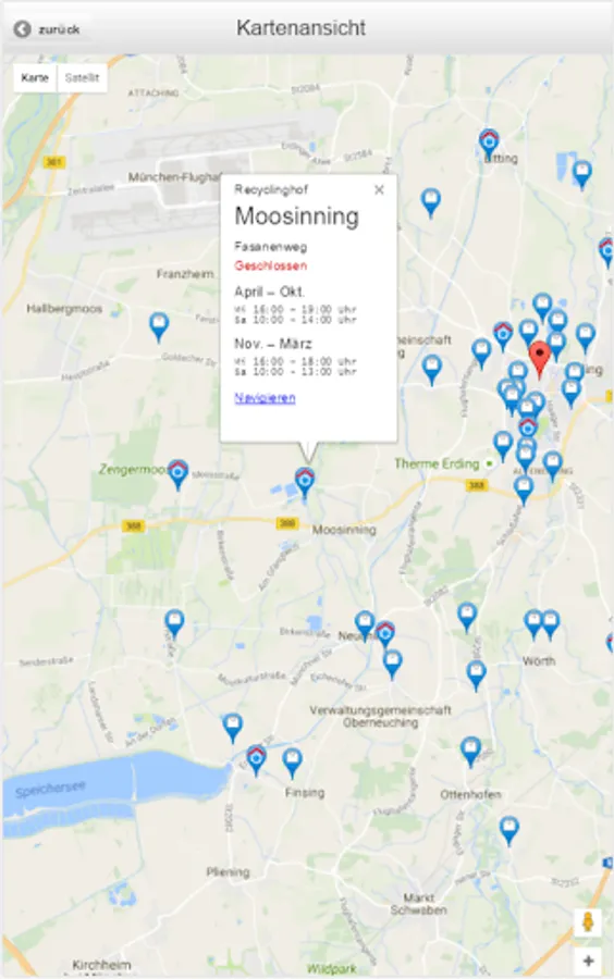 * Collection points for waste of all kinds, including location and opening times, incl. Map and navigation.