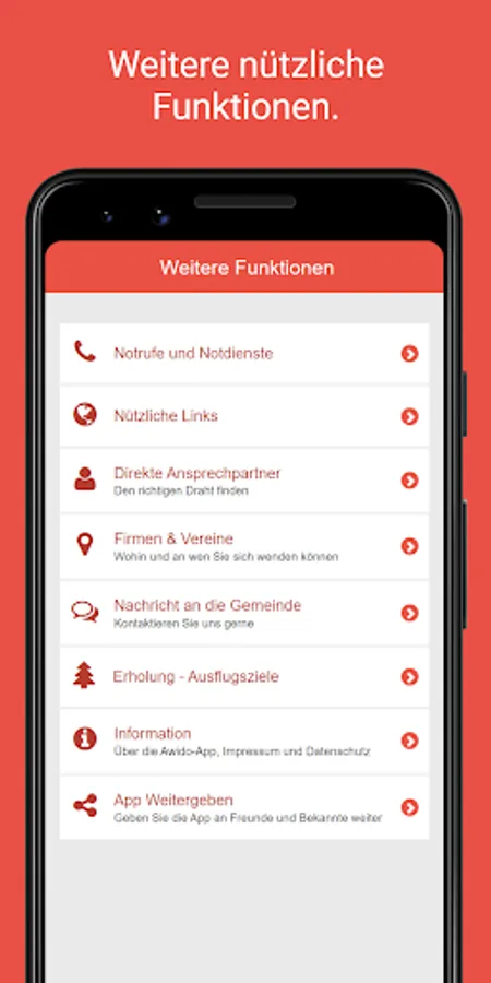 ** Storage / Photos / Media / Files / Camera: The app enables messages to be sent to the community or damage reports. For this purpose, a photo can be taken or uploaded in addition to the textual description. Photos are only taken and transferred if you explicitly request it.