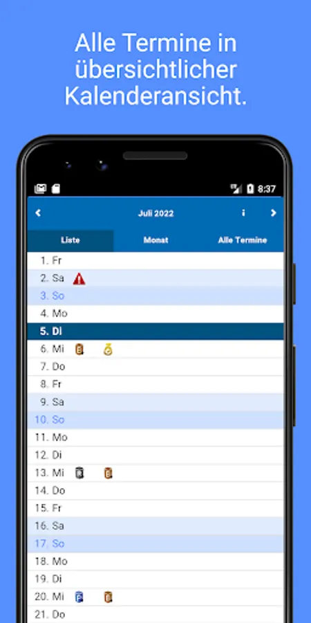 The app makes it possible to save collection appointment reminders directly in your device calendar. This requires the "Calendar" permission.