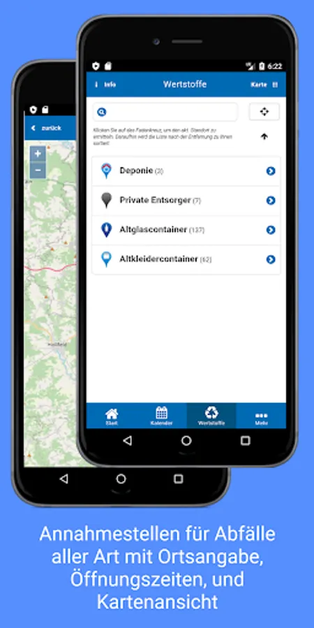 ? Acceptance points for waste of all kinds with location and opening times, incl. map view and navigation.