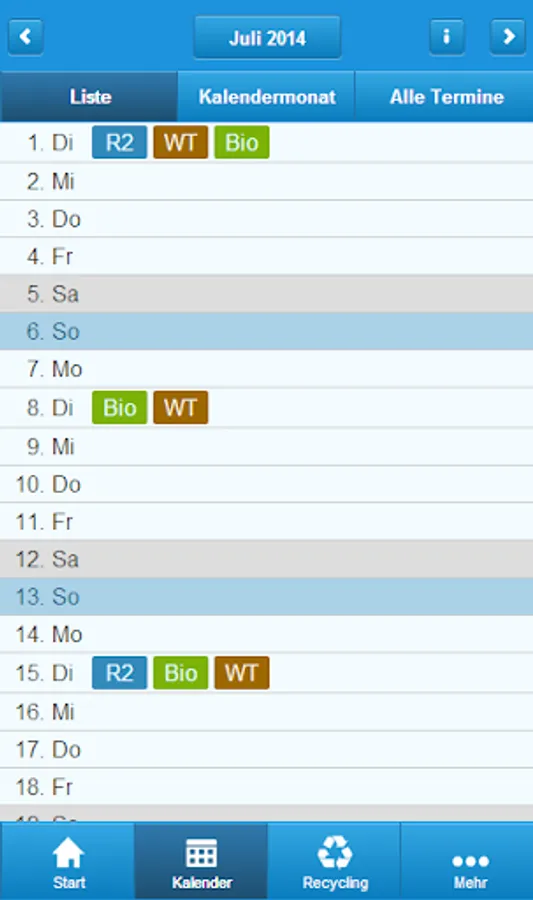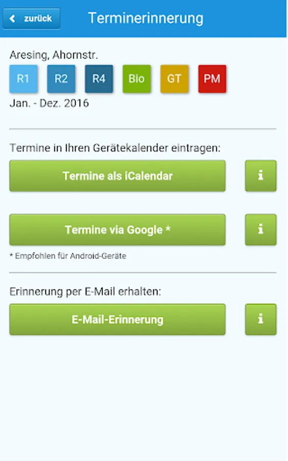 * Remember to highlight the ton? With the memory function, the dates for the emptying in your calendar transferred.