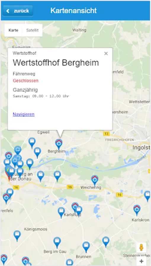 * Collection points for waste of all kinds, including location and opening times, incl. Map and navigation.