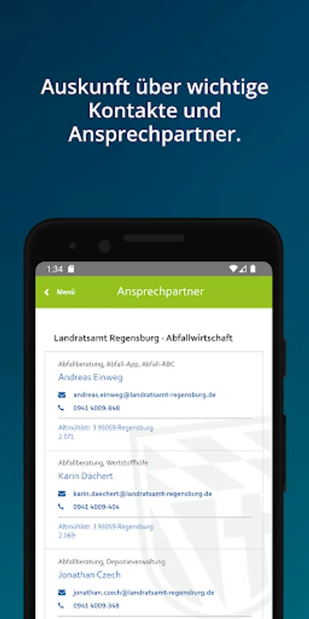 ? The contact list provides information about all positions in waste management with telephone number and e-mail address.