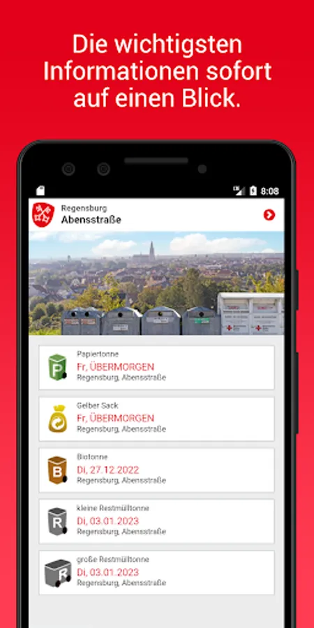 The waste app of the city of Regensburg. Always stay informed - about collection dates, collection points, problem waste and much more.