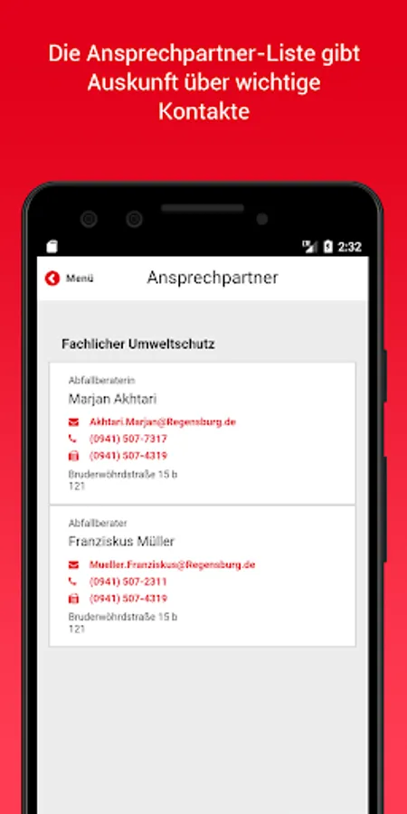 ? The contact list provides information about all positions in waste management with telephone number and e-mail address.