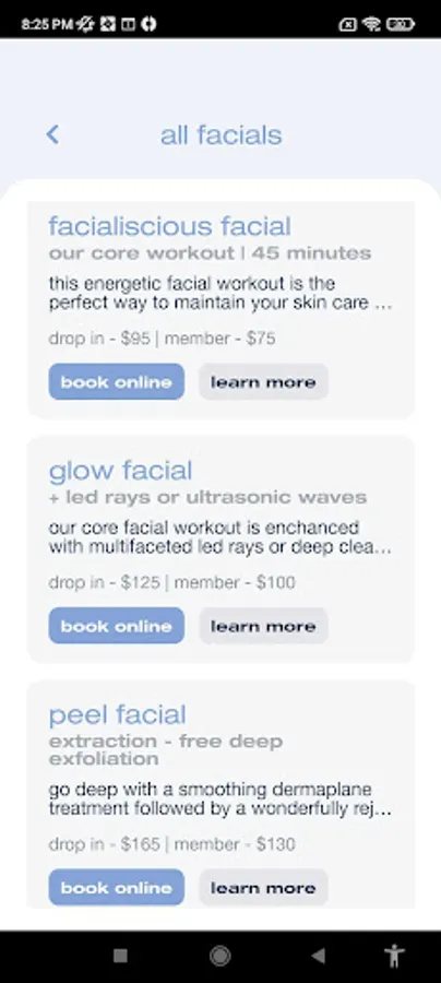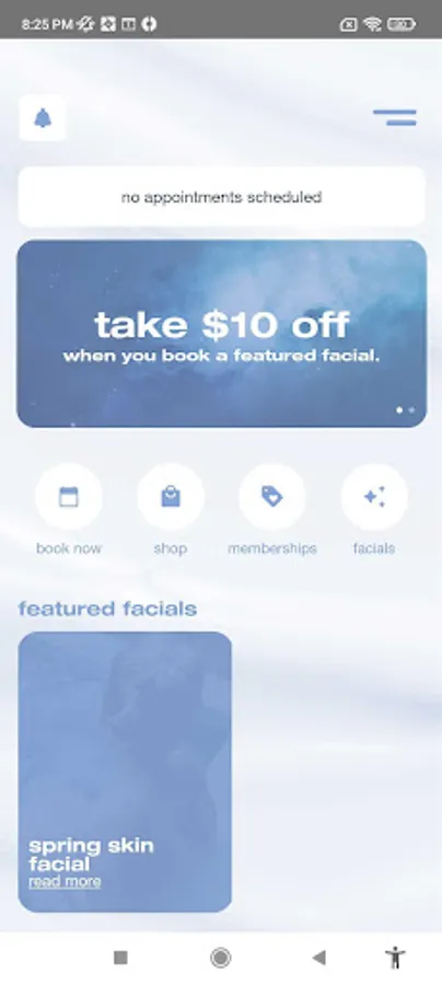 - check out featured facials and in app promos