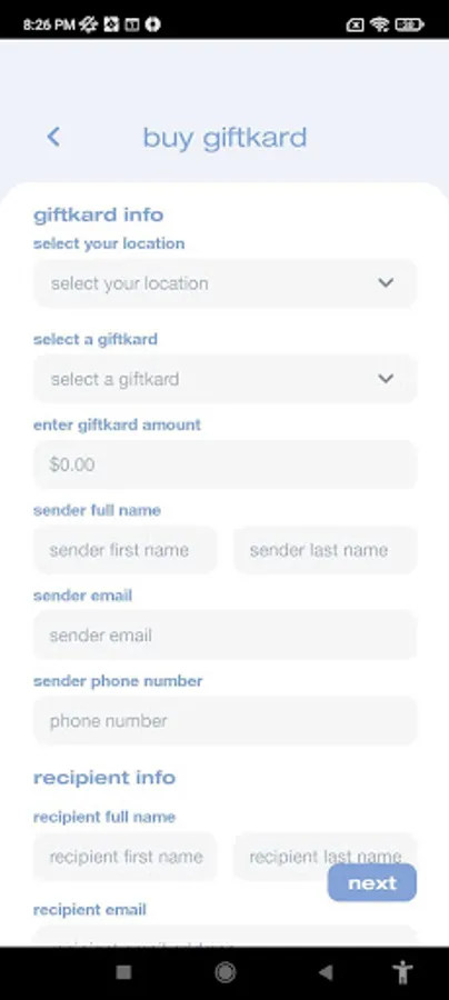 - purchase and view giftkards
