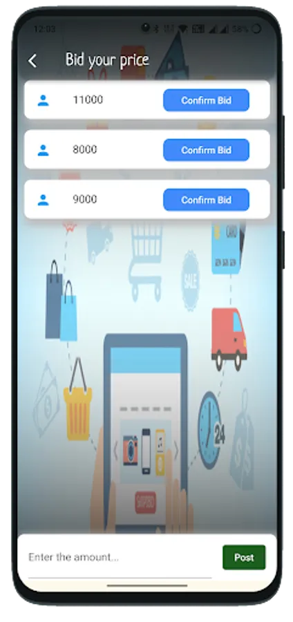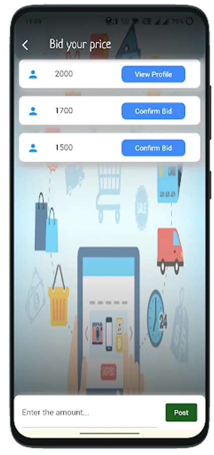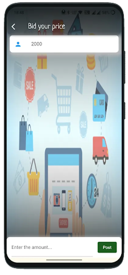 Seller posts his product on the app and enters all details like price range, what he is expecting, and other details.