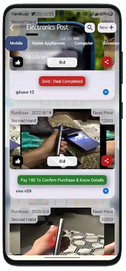 The user posts the product which he wants to buy on the app and enters other details like model no, brand, variant, mode of payment, and other detail required.