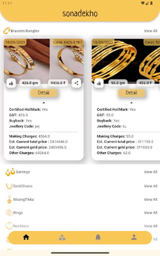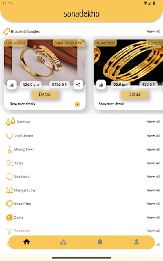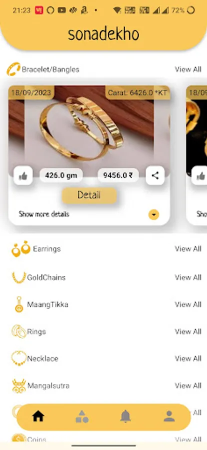 Sonadekho is a new way of offline jewelry shopping by seeing jewelry posted by verified jewelers in your city with all the details. Browse from a vast catalog of designs and details of jewelry from verified shops in your city, Whichever designs suit you, visit the store to purchase it offline.