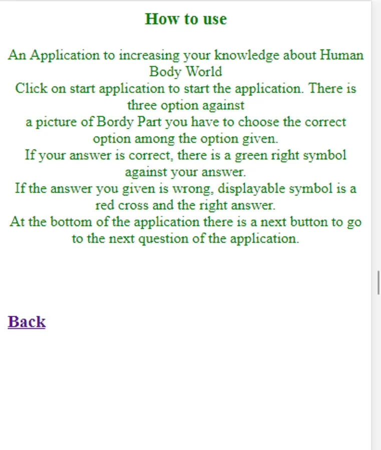An Application to test your knowledge in Human Body Organ.